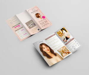 「Hair Sallon Mirror」の三つ折りパンフレット 2025年12月17日 最終更新日時 : 2025年12月17日 bit01.design 「Hair Sallon Mirror」の三つ折りパンプレットです。髪の素敵なモデルの写真を大きく配置することで行ってみなくなるような訴求感をだし、淡い色合いを配色してオシャレ感もだしました。